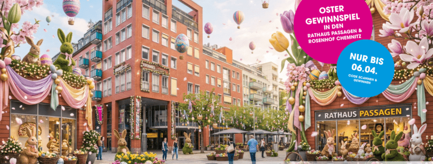 Pünktlich zur Osterzeit erwartet Besucher der Innenstadt eine besondere Aktion: Die Rathaus Passagen und der Rosenhof Chemnitz laden gemeinsam zu einem großen Oster-Gewinnspiel ein. Vom 23. März bis zum 06. April haben alle Besucher die Möglichkeit, attraktive Gutscheine und weitere Preise lokaler Händler im Gesamtwert von über 500 € zu gewinnen.